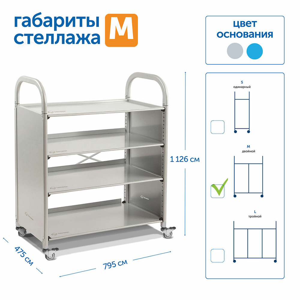 Мобильный стеллаж Сенсориум M с 3 прямыми полками