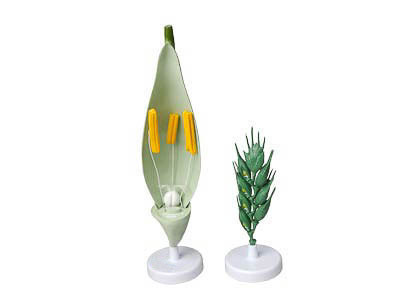 Модель демонстрирует строение цветка и плода злаковых. Модели цветка и колоска (колосок разборный), изготовлены из пластмассы, окрашены в естественные цвета, устанавливаются на подставки.