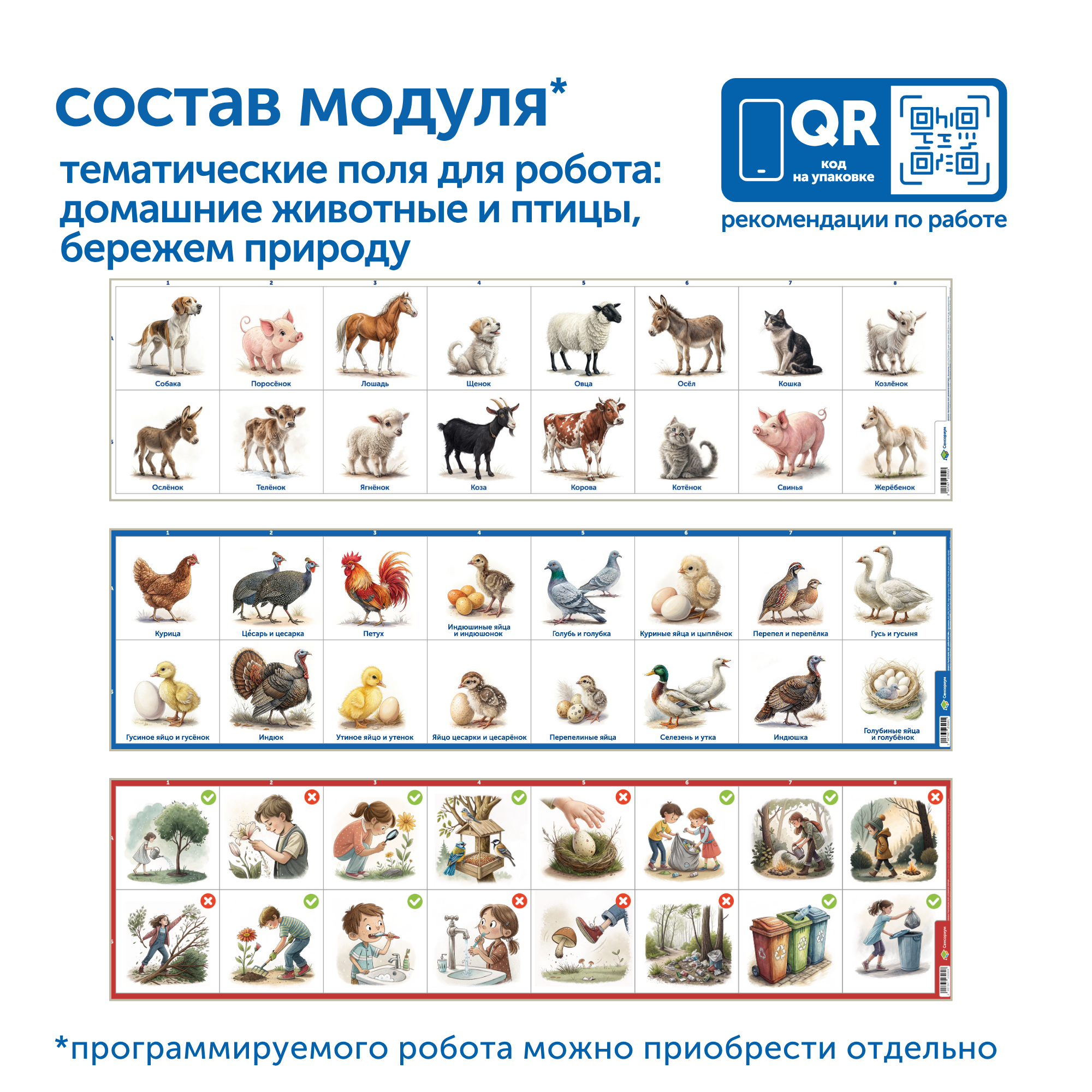 С модулем дети узнают о различных видах домашних животных, их повадках и особенностях, получат первые навыки наблюдения за природой, а также узнают как они могут помочь в охране природы.