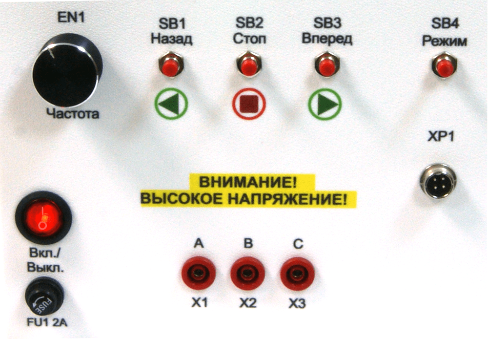 Модуль «Преобразователь частоты» предназначен для управления трехфазными асинхронными двигателями со стабилизацией по частоте или по оборотам, имеется реверс.