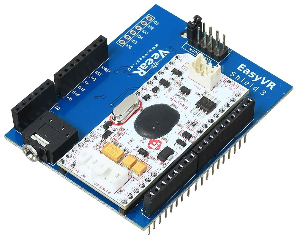 EasyVR расшифровывается как «Easy Voice Recognition» и позволяет записать перечень команд через микрофон, а потом определить, фразу с каким номером вы произносите. Получив номер команды, микроконтроллер выполняет заложенное в неё действие: включает-выключает свет в комнате, открывает дверь хозяину или подаёт чашечку кофе. Также устройство умеет проигрывать в ответ заранее записанные аудиофрагменты, чтобы поддерживать диалог.
