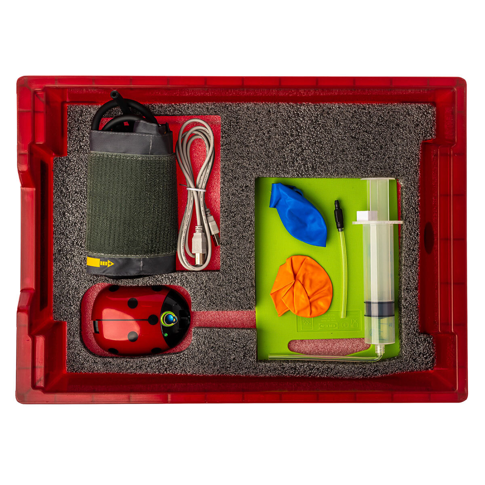 Модуль НАУРАША для изучения понятия «Сила» включает в себя: датчик давления, соединительный кабель, манжету, грушу, шарик надувной (2 шт.), шприц 50 мл., пластину, переходник с трубкой.