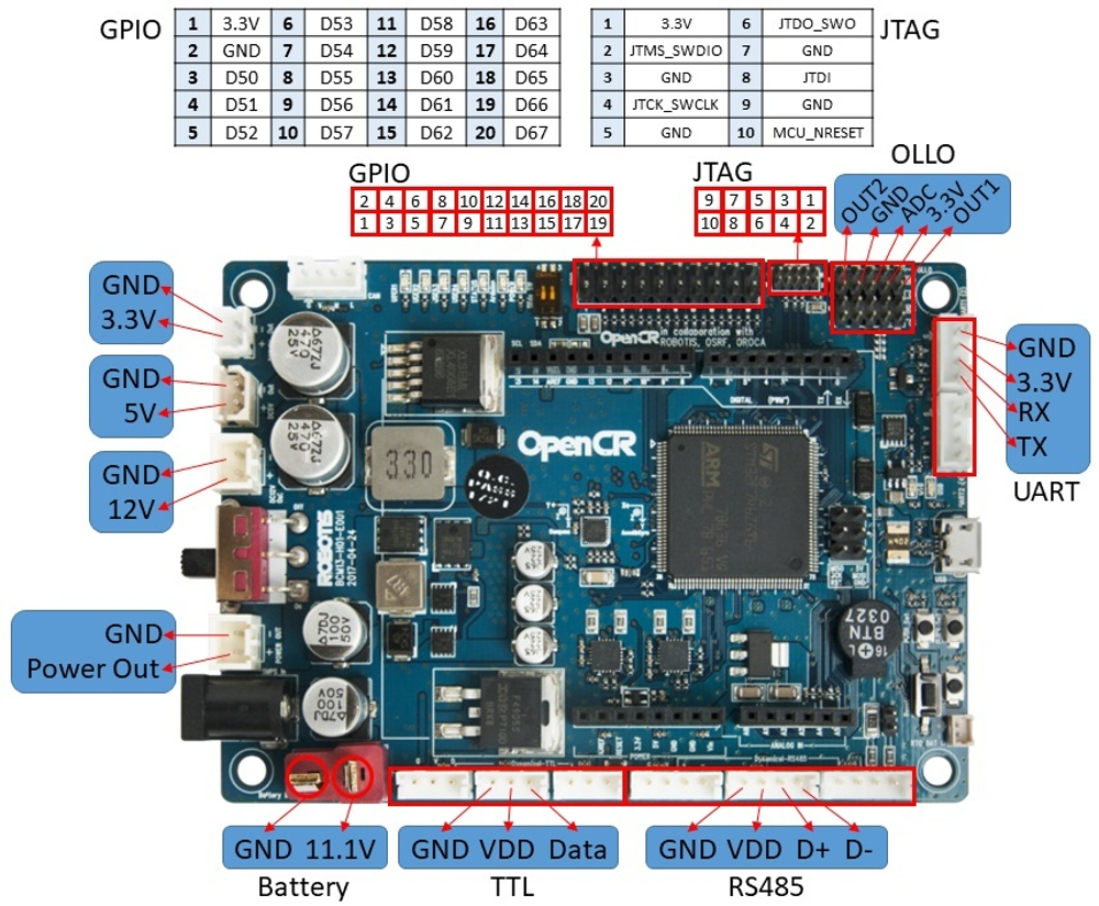 Модуль управления OpenCR1.0 (открытого исходного кода модуля управления для ROS) - программируемый робототехнический контроллер с открытым исходным кодом со встроенным мощным MCU от ARM Cortex M-7.