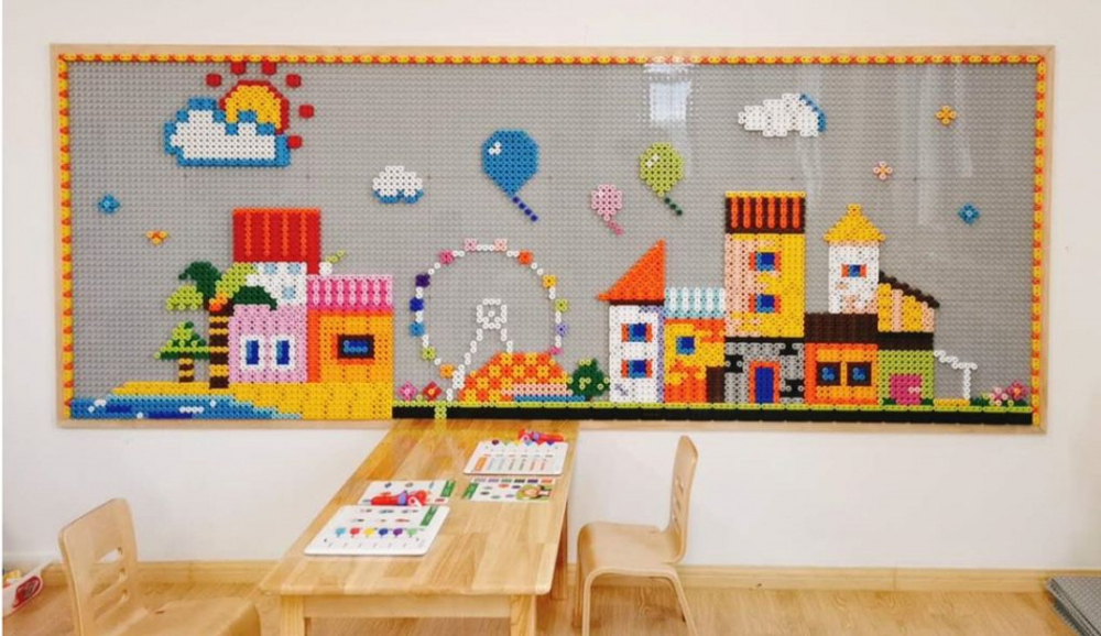 Пластиковые панели могут быть закреплены на стену или на жесткое ровное основание при помощи клея, чтобы образовать единое пространство для конструирования, либо использоваться по-отдельности, как индивидуальные листы для конструирования для одного ребенка.