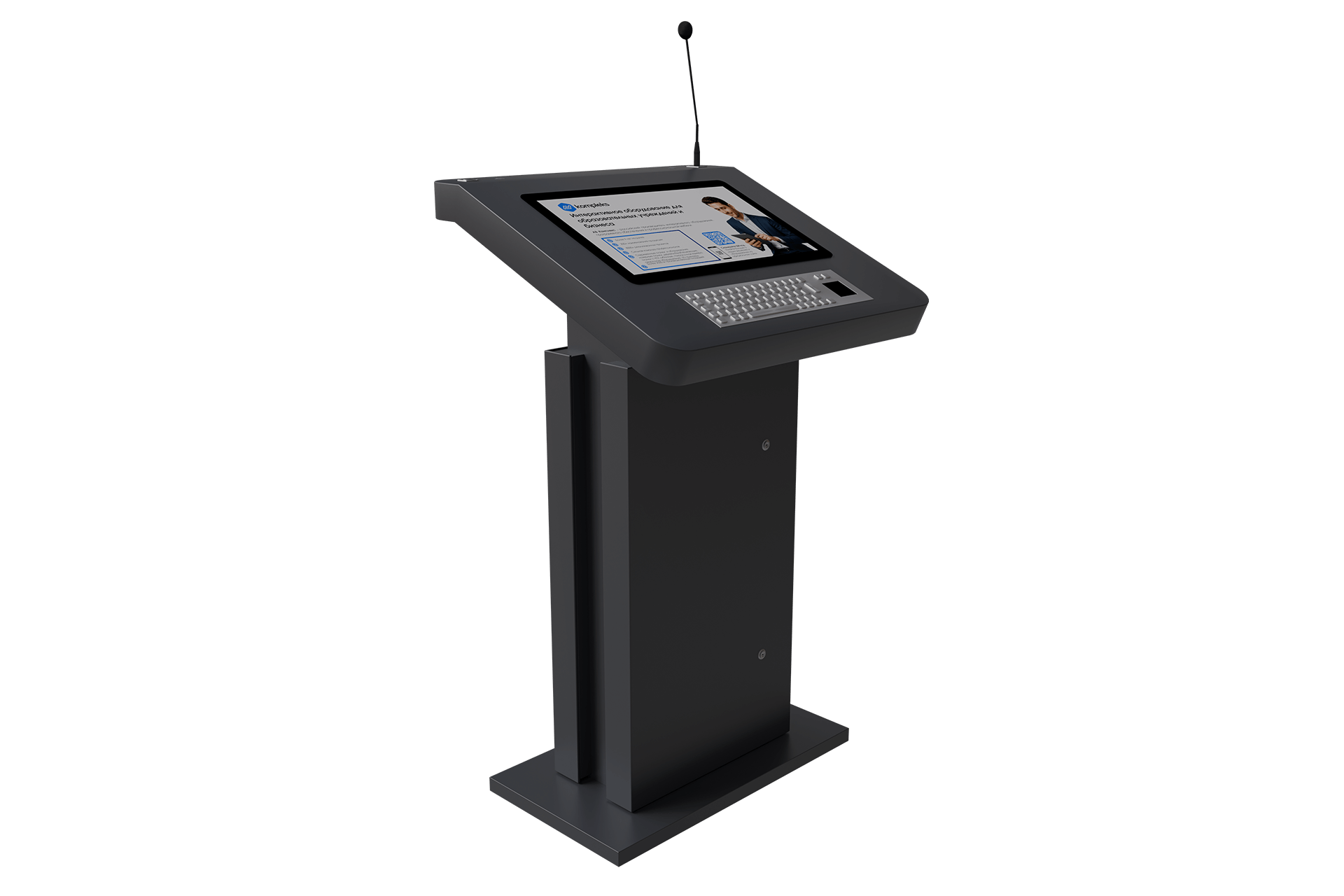 Удобное взаимодействие с контентом достигается за счет встроенной антивандальной клавиатуры с трекболом и сенсорного экрана с Multi Touch System. Это особенно полезно в ситуациях, когда требуется быстрое реагирование на запросы аудитории или работа с мультимедийными материалами.