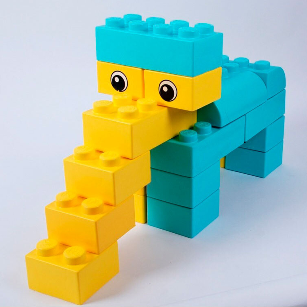 Мягкий конструктор серии "Великан" представлен в яркой цветовой гамме и состоит из 14 крупных легко совместимых блоков из мягкого полимерного материала.