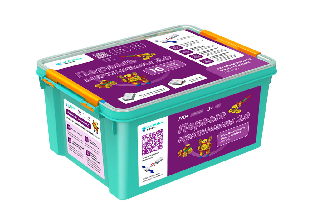 АВРОРА Robotics «Первые механизмы 2.0» – конструктор, предназначенный для детей в возрасте 3-6 лет. Изделие позволяет ребенку или группе до 6 детей собирать механические модели из пластиковых компонентов, как в рамках самостоятельной работы с изделием, так и в рамках учебной деятельности, проводимой под управлением педагога-воспитателя.