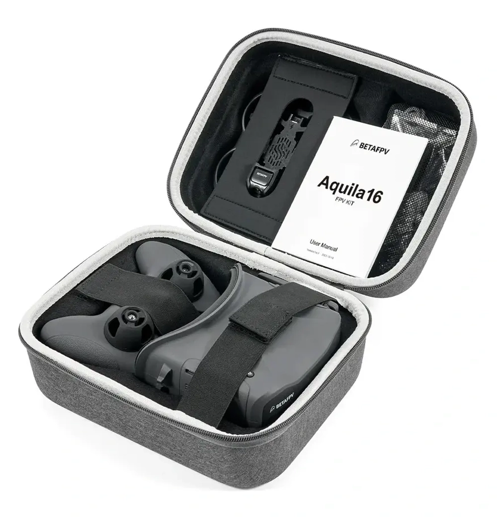FPV набор Aquila16 — один из наиболее продвинутых комплектов для начинающих. Предназначен для полётов как в помещении, так и на улице. Квадрокоптер с пушер компоновкой (перевёрнутыми моторами) обладает модульным аэродинамическим корпусом. Летаетдо 8 минутна расстояниедо 200 метров. В комплект также входит FPV шлем VR03 с возможностью записи полётов и пульт управления LiteRadio 2 SE с новейшей прошивкой ELRS 3.0. Поставляется в удобном EVA кейсе.