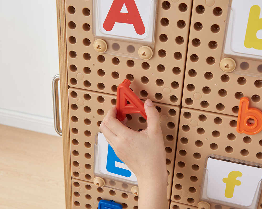 Набор состоит из 120 разноцветных букв английского алфавита в 5 цветах (синий, красный, оранжевый, желтый, зеленый).