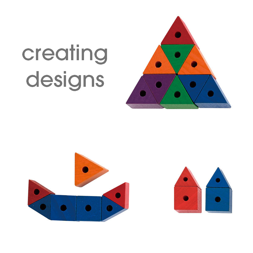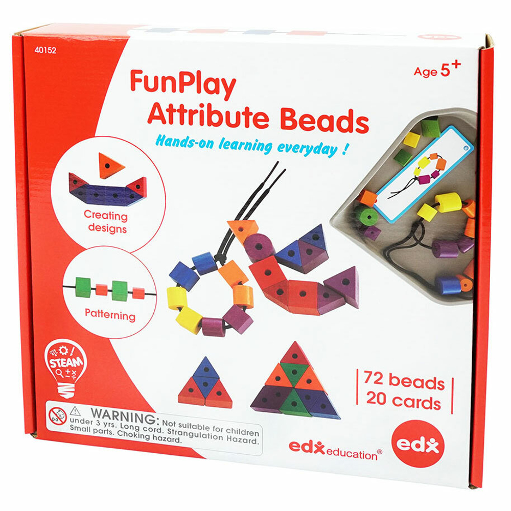 В комплект входят: 72 бусинки трех форм, двух размеров и шести цветов, 2 шнурка и 25 двусторонних карточек для занятий, а также обучающий поднос Fun Messy Tray.