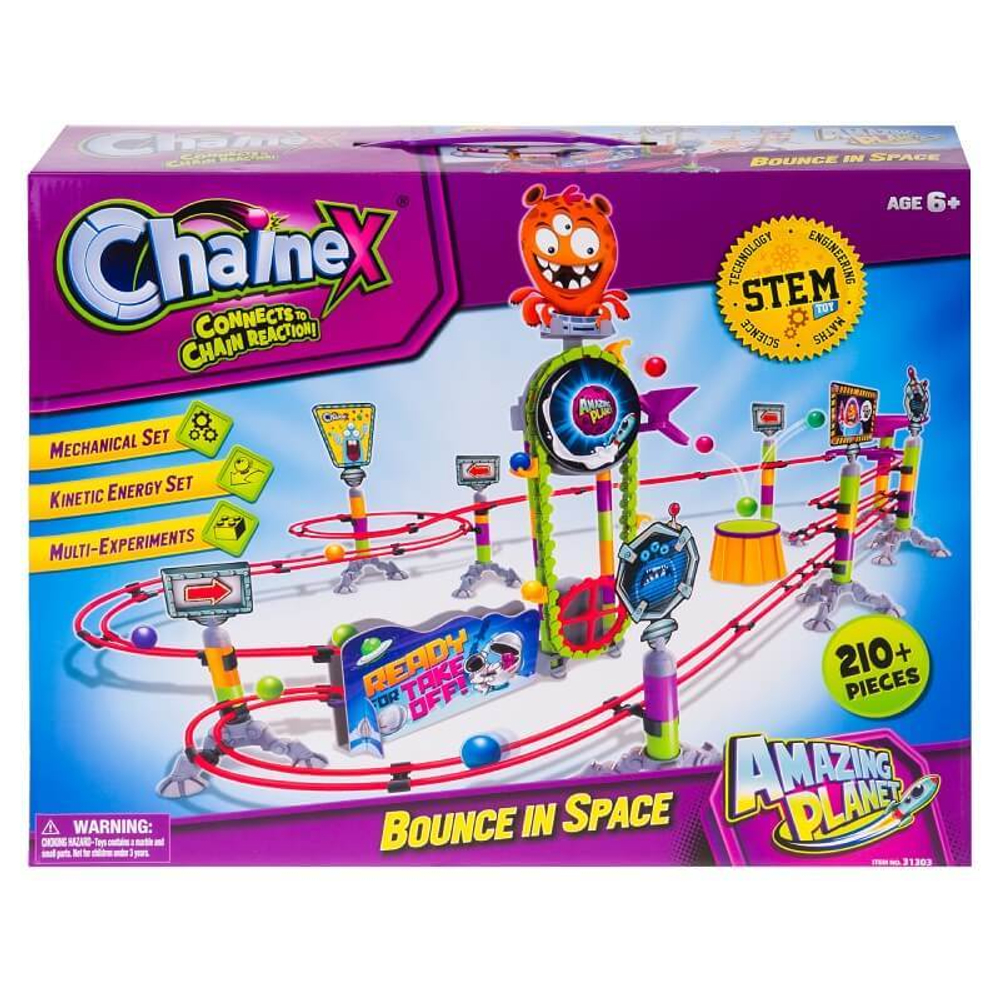 Увлекательный конструктор Chainex: Прыжок в космос! Готовы ли вы отправиться на удивительную планету? Проверьте себя, пройдя испытание ПРЫЖОК В КОСМОС. Вы будете исследовать мир и учиться в ходе ИНТЕРЕСНЫХ экспериментов. СОЗДАВАТЬ и СОЕДИНЯТЬ компоненты и получать удивительные реакции. Выполните серию увлекательных экспериментов с кинетической энергией, физическими законами, электричеством и сотнями интересных машин и механизмов, собранных вашими руками!