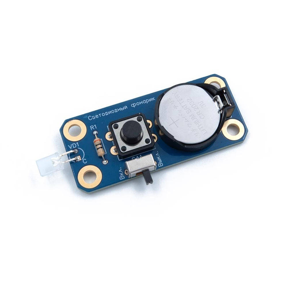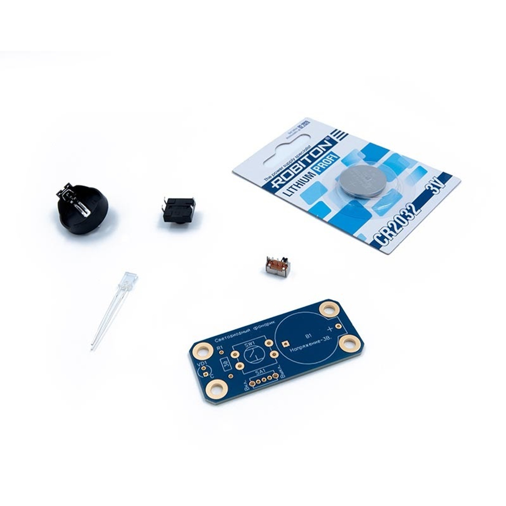 Если Вам нужны паяльник, инструменты и расходные материалы для пайки, рекомендуем купить "Базовый набор для изучения пайки печатных плат". В этом наборе есть всё, что понадобится Вам или Вашему ребёнку не только для сборки "Светодиодного фонарика", но и других, не менее интересных устройств.