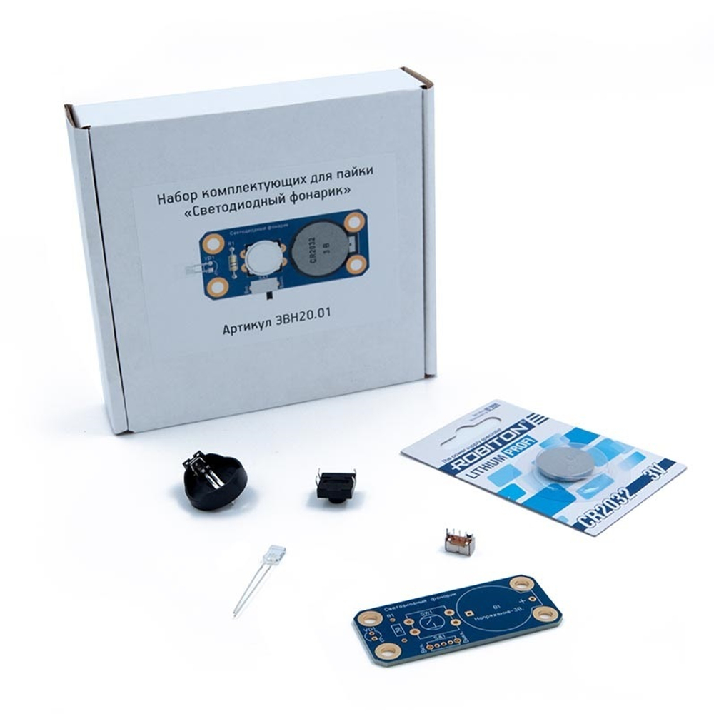 Набор предназначен для самостоятельной пайки устройства "Светодиодный фонарик". В состав набора входят все необходимые комплектующие для сборки фонарика.