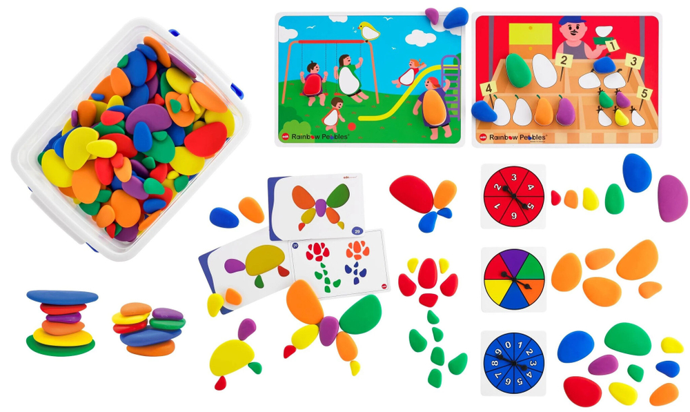 Радужные камешки – интересный, пригодный для сенсорного развития, и к тому же многогранный материал для множества маленьких затей. Идей достаточно много, как можно использовать с пользой: играть, творить, изучать математику, развивать восприятие, мелкую моторику и логическое мышление.