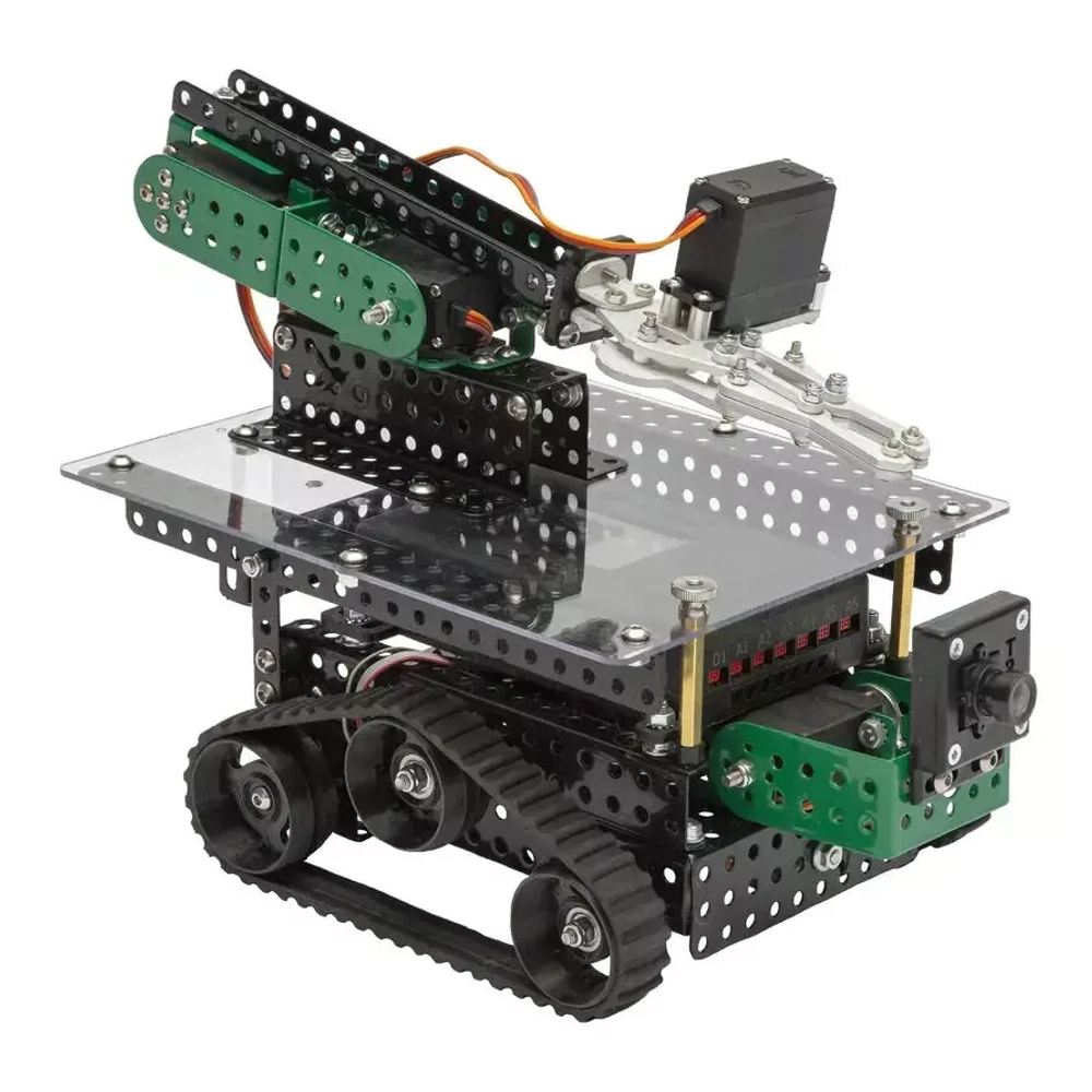 Из деталей набора собирается гусеничная платформа, которая обеспечивает лучшее сцепление с различными поверхностями, делая робота более проходимым.