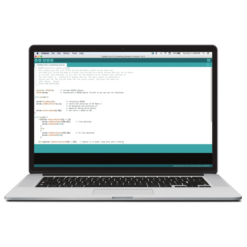 В наборе есть всё, что группе из 2 учащихся потребуется для создания программируемых роботов с использованием контроллера для робототехнических моделей серии PRIZM™.