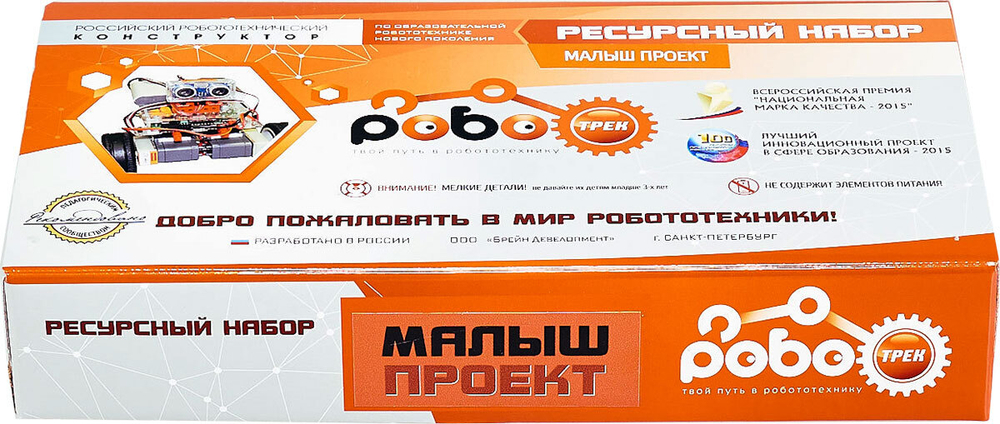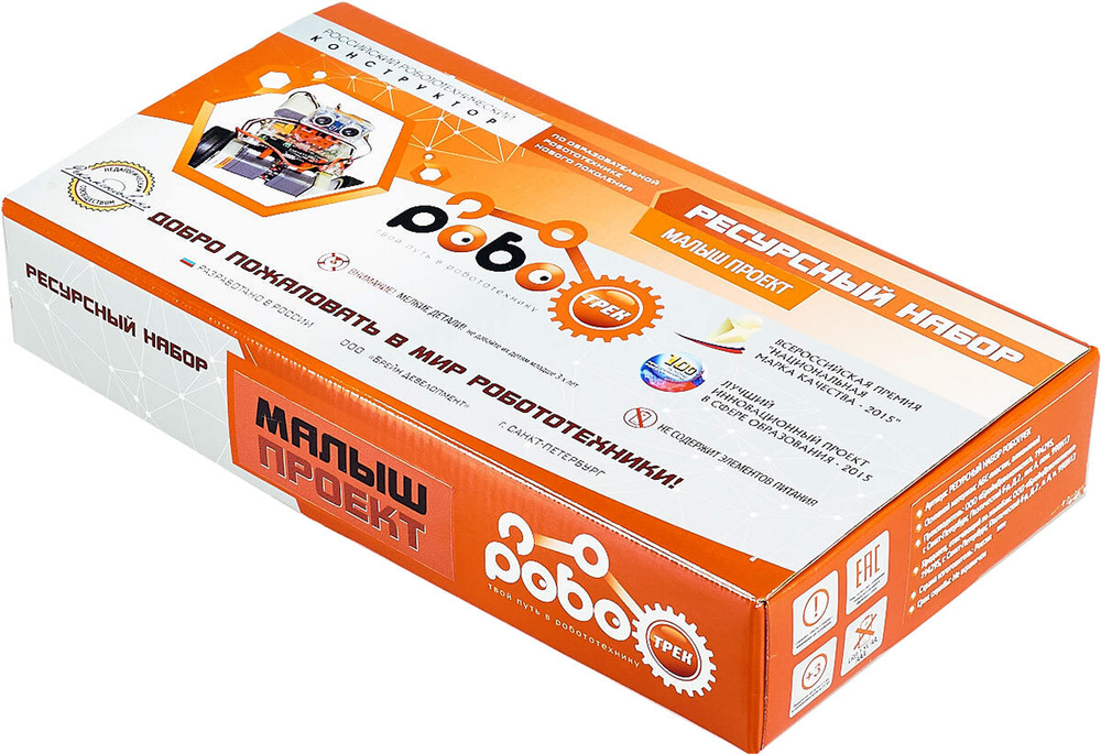 НАБОР ЭЛЕКТРОННЫХ КОМПОНЕНТОВ "РОБОТРЕК МАЛЫШ ПРОЕКТ". Предназначен для расширения возможностей образовательных конструкторов по робототехнике "Роботрек Малыш 1" и "Роботрек Малыш 2" для проектной деятельности с детьми 5-6 лет.