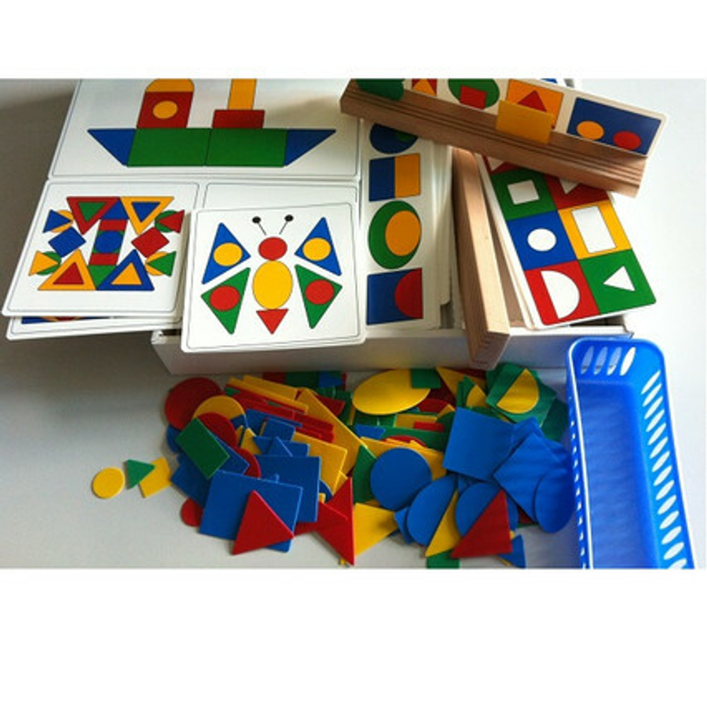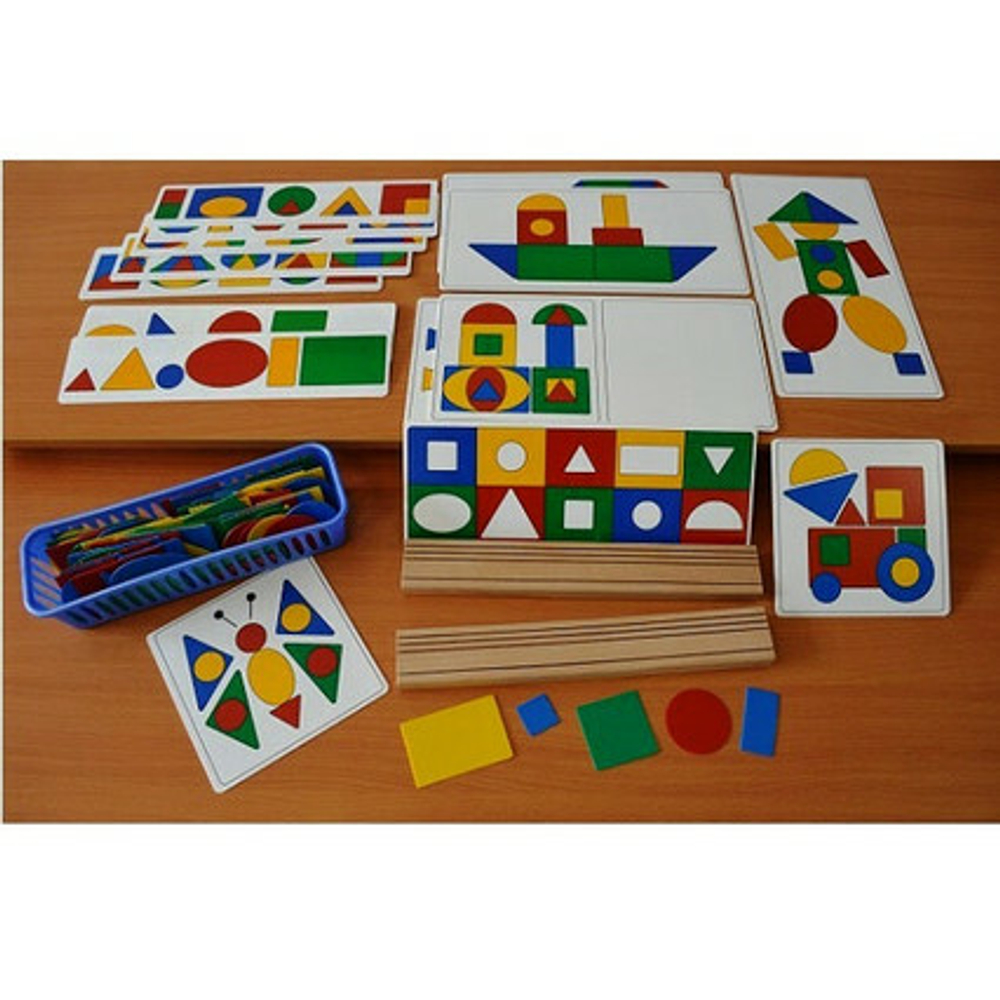 Набор предназначен для формирования представлений о цвете, форме, величине, а также для усвоения пространственных отношений (позади, впереди, за, между), развития мышления, внимания, зрительной памяти.