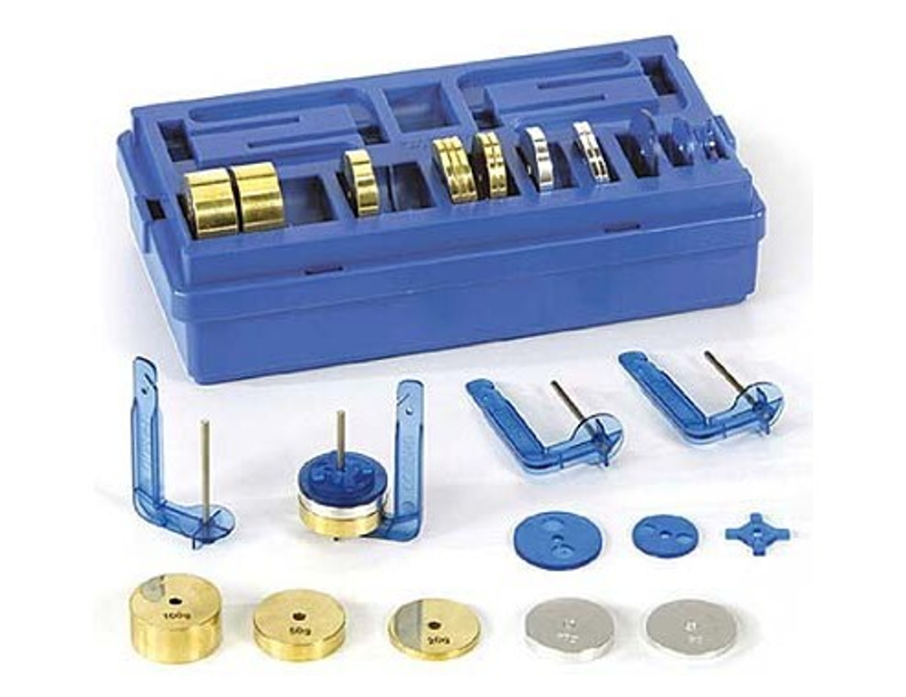 Набор грузов с держателями PASCO включает в себя крючки из поликарбоната со стальными стойками и «продырявленными» грузами, которые не будут падать с крючка. Всего 27 весов от 0,5 г до 100 г. Каждая груз имеет свое значение, и каждый крючок может удерживать приблизительно 250 г.