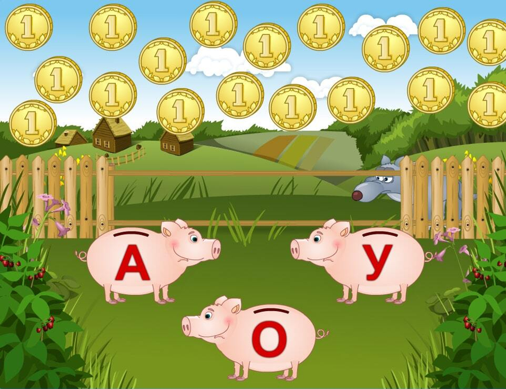 “Свинки-копилки” - игра с гласными звуками.