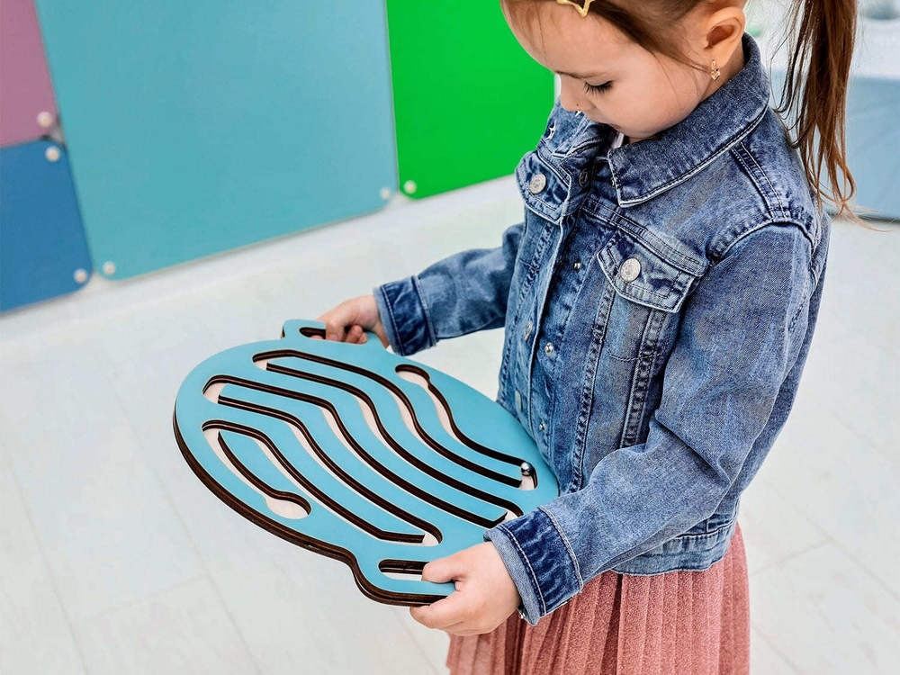 Балу - это игровой тренажёр для развития мозга и координации движений. На круглой доске с двумя ручками по бокам выполнен лабиринт, по которому нужно прокатить шарик с помощью согласованных движений рук.