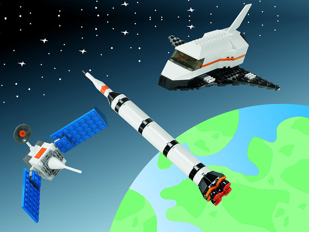 Набор включает элементы для создания космического корабля, самолета, спутников и многое другое.