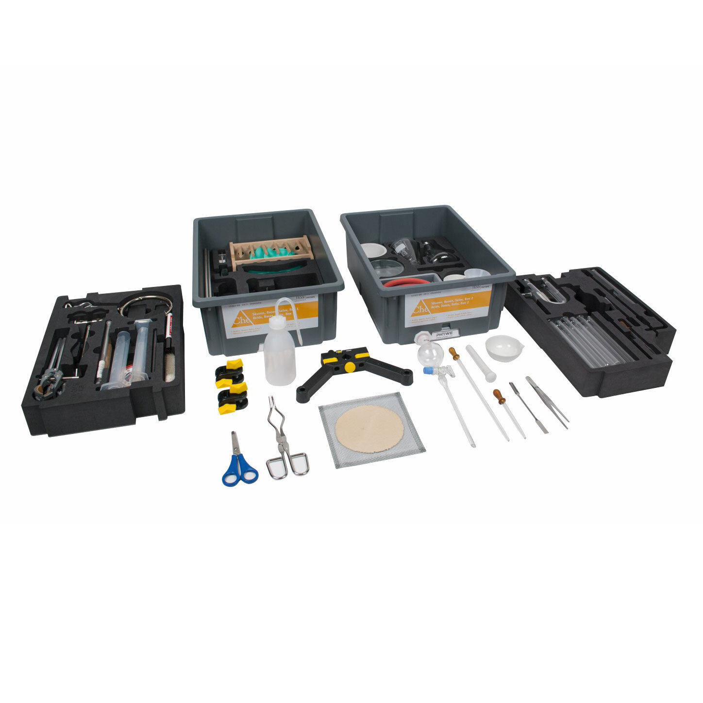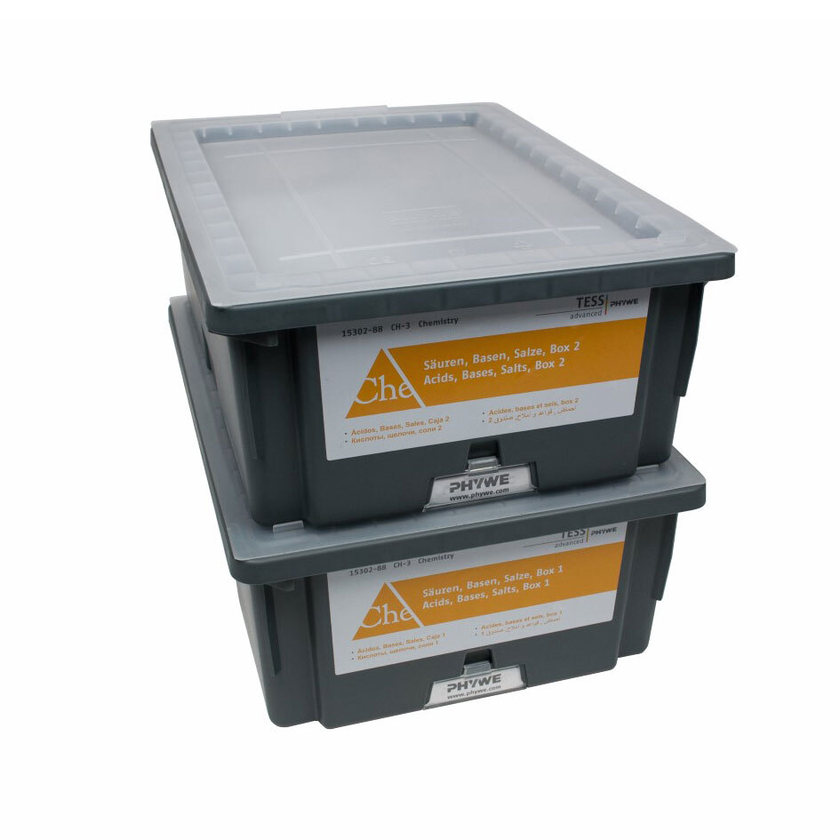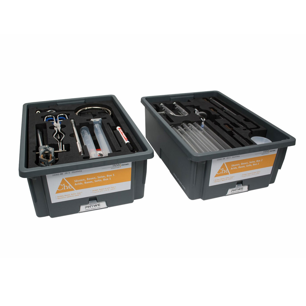 Преимущества Простое выполнение экспериментов. Удобное хранение: Прочные, удобные пластмассовые ящики, быстрая проверка комплектности (вставка из пенопласта). Соответствует международной учебной программе. Специально разработан для введения в химию кислот, солей и оснований(щелочей). Отдельные компоненты экспериментальных установок просто размещаются на поверхности стола. Это делает выполнение работ быстрым и несложным.