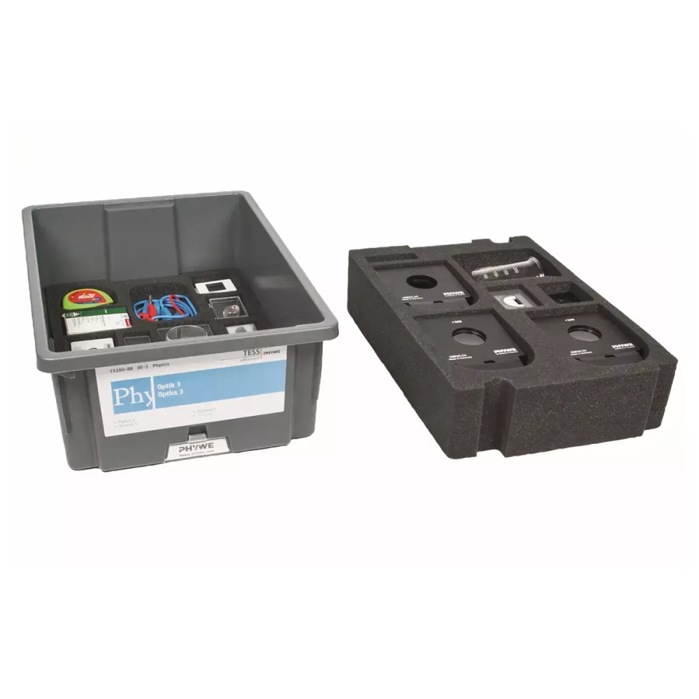 Преимущества Простое выполнение экспериментов. Удобное хранение: Прочные, удобные пластмассовые ящики, быстрая проверка комплектности (вставка из пенопласта). Соответствует международной учебной программе. Стабильная оптическая скамья, собираемая из штативного материала.