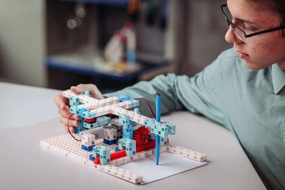 Сборке действующих прототипов распространённых механизмов из универсальных, а не уникально специализированных деталей