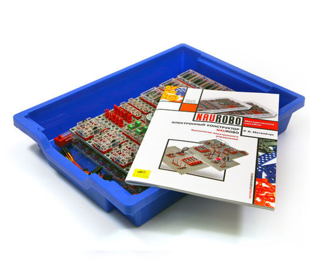 Электронный набор-конструктор «Науробо для сборки электронных схем» – это настольный стенд, на котором можно собрать различные электронные схемы, описанные в методическом пособии.