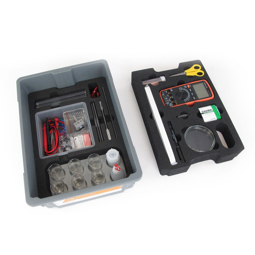 С экспериментами по электропроводности веществ и исследованию миграции ионов, а также концентрационной или температурной зависимости генерации напряжения, этот набор завершает все основы и принципы электрохимии.