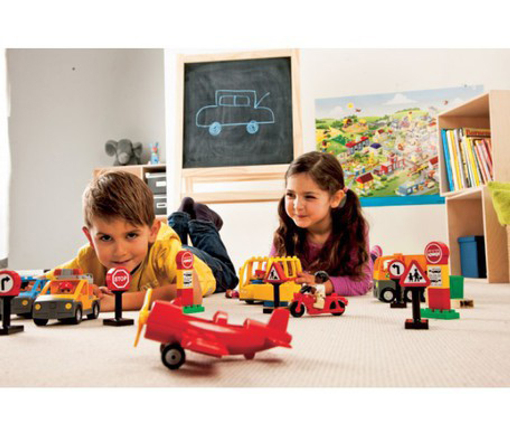 Набор также включает 7 минифигурок. Ребенок сможет ознакомиться с различными видами перевозок, изучить работу коммунальных служб, и т.д.