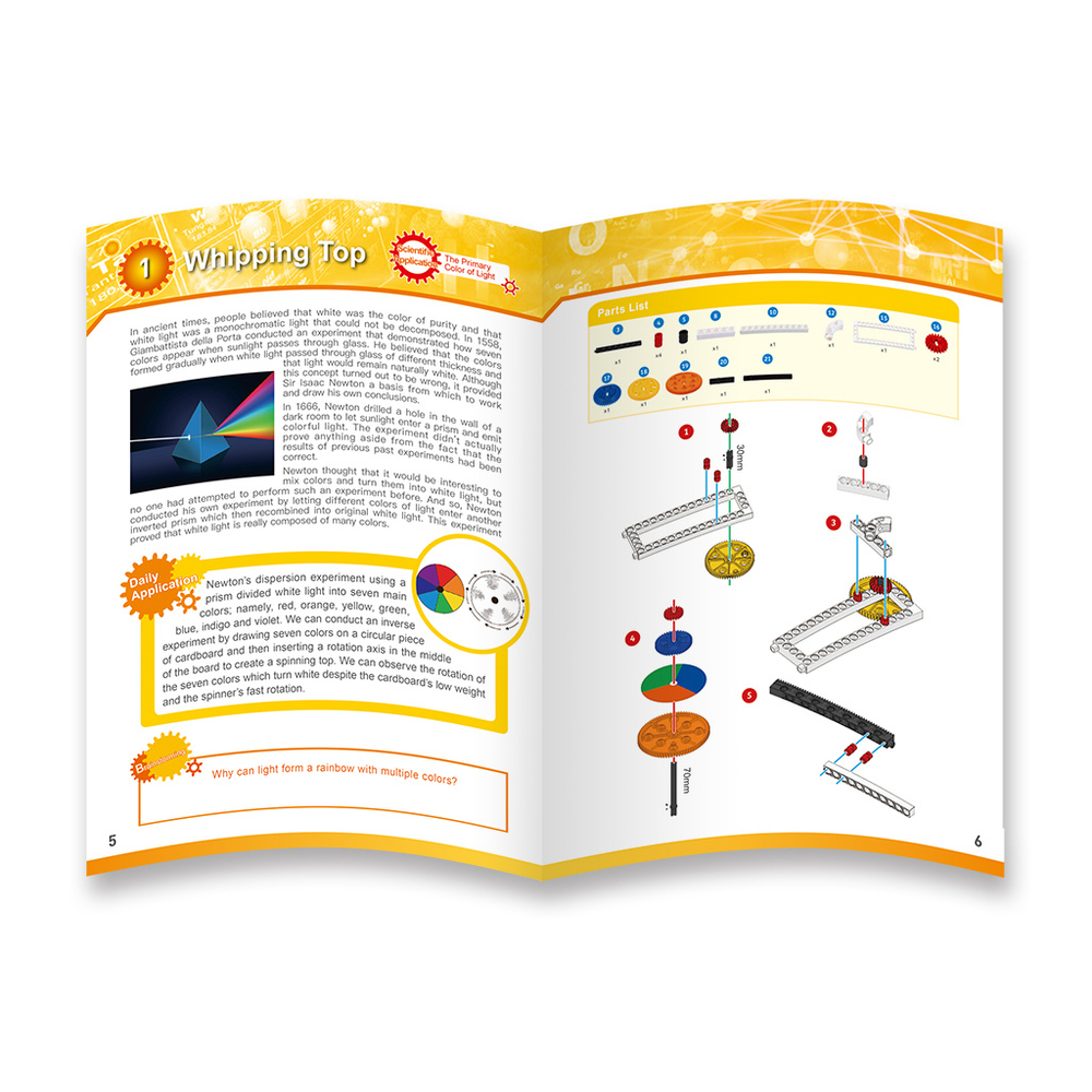 В набор включено 20 уроков, в ходе которых дети собирают 16 моделей и выполняют 4 проектные работы. Каждое занятие посвящено сборке одной модели, что позволяет постепенно и последовательно осваивать тему. Среди моделей — фотоаппарат-камера-обскура, проектор, микроскоп, телескоп, перископ, очки с разными линзами и многое другое.