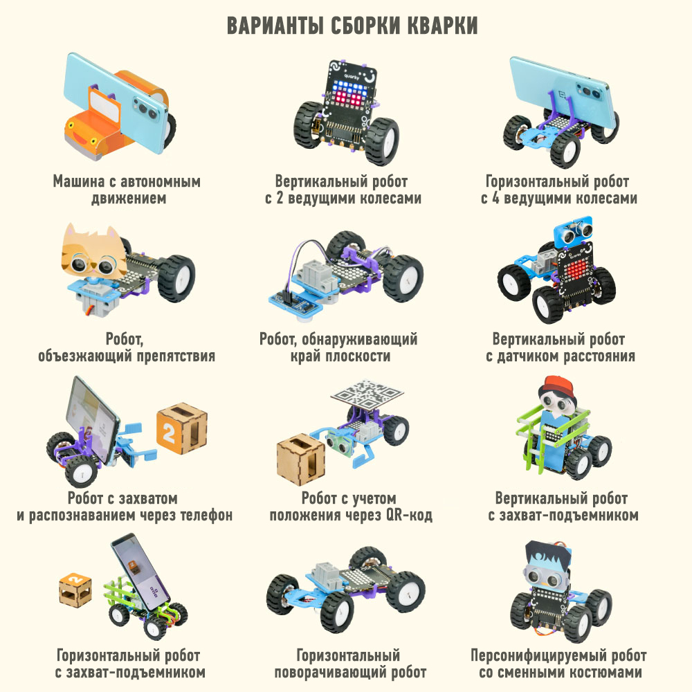 Набор Кварки - это уникальная платформа для изучения робототехники и обучения программированию для детей от 7 лет и старше.