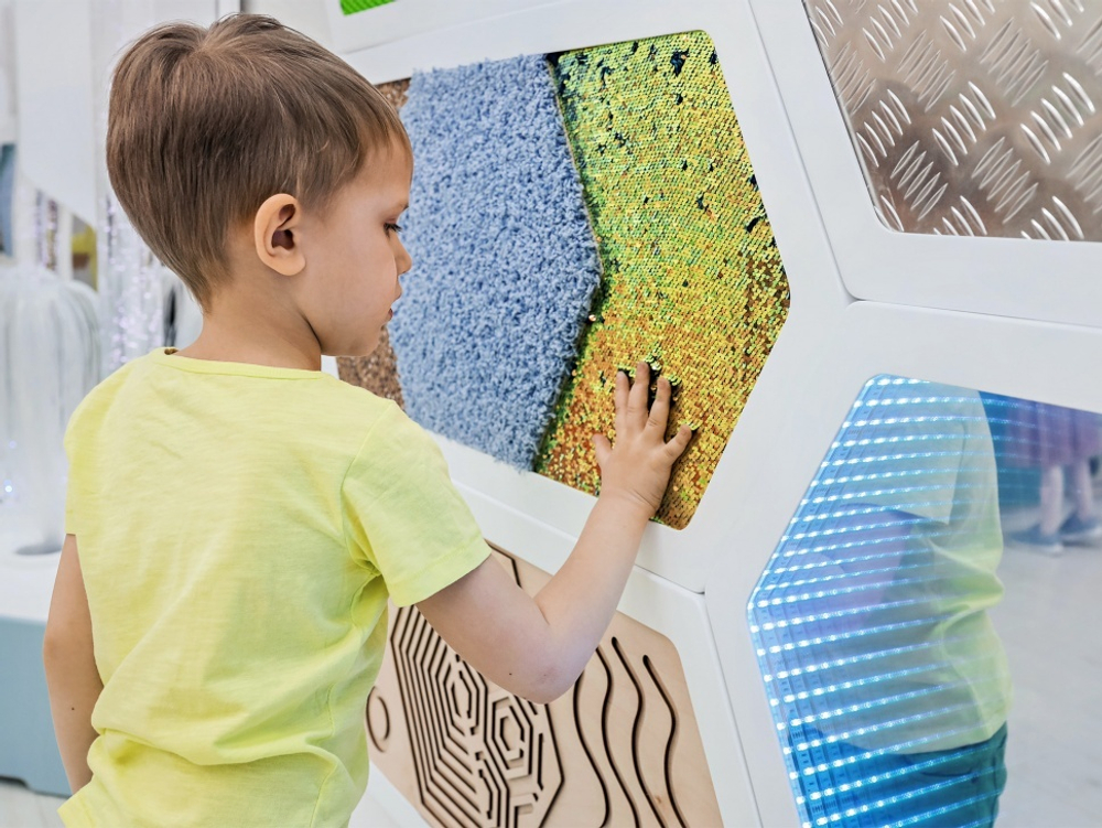 Декоративные тактильные панели украшают помещение, будь то кабинет психолога, холл развивающего центра или рекреация детской клиники. Для их применения не нужен капитальный ремонт, они скрывают несовершенства стен и вносят элемент развития в оформление.