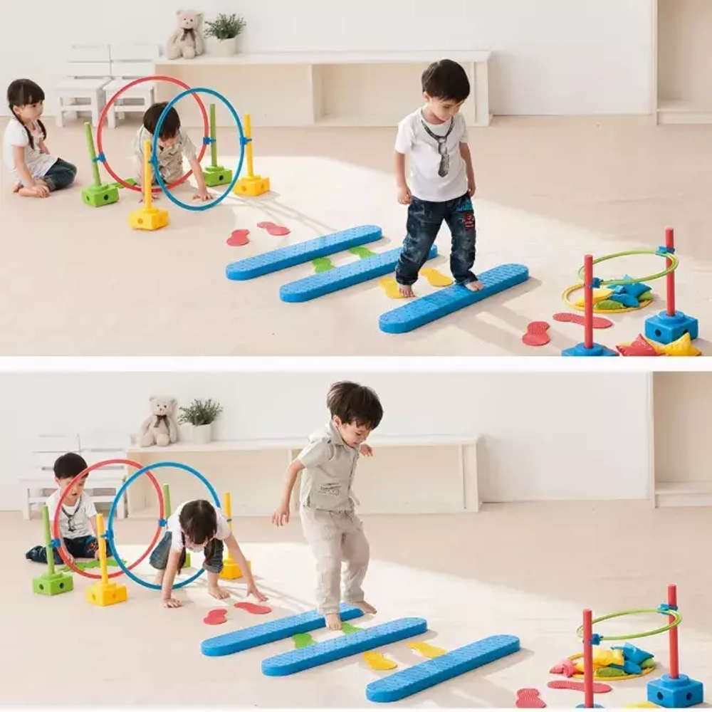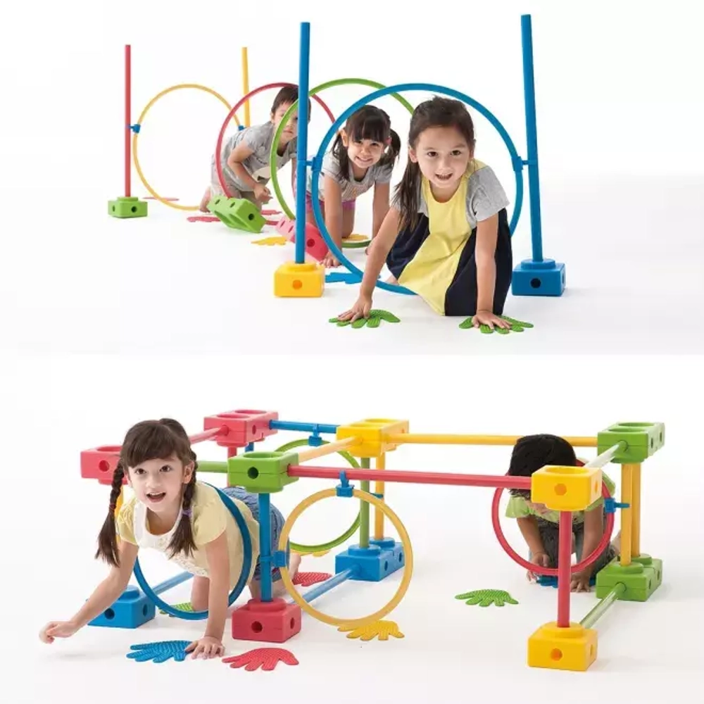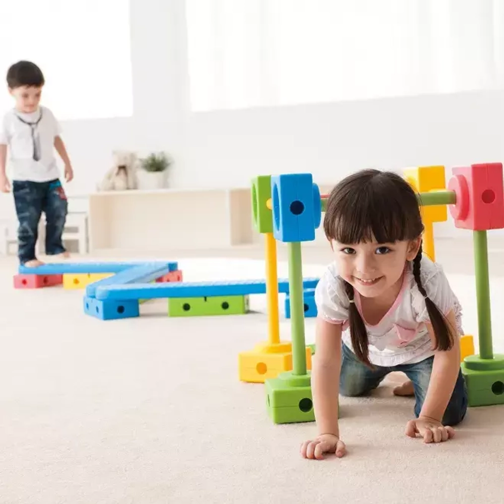 Набор отлично подходит для организации физической деятельности в ограниченном пространстве. Модульная система позволяет создавать маршруты любой сложности.