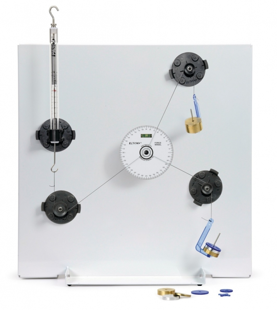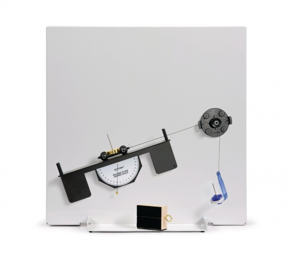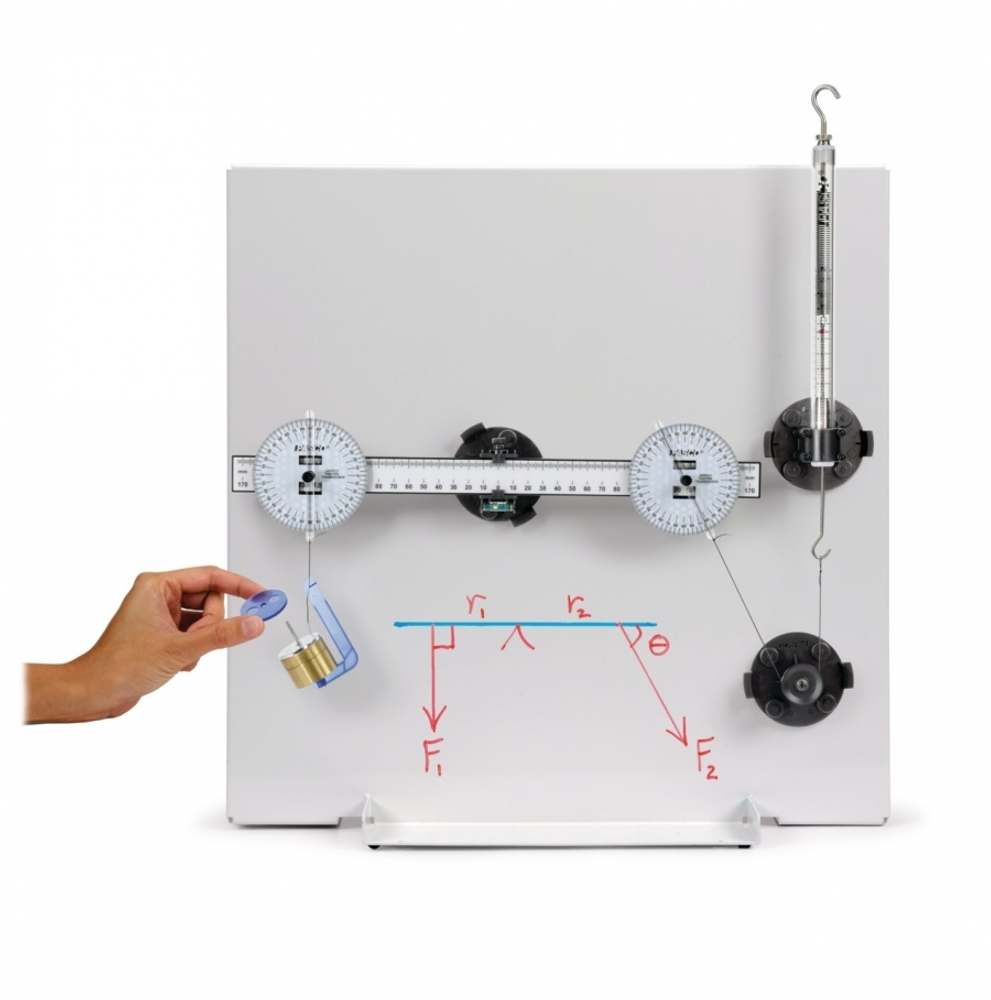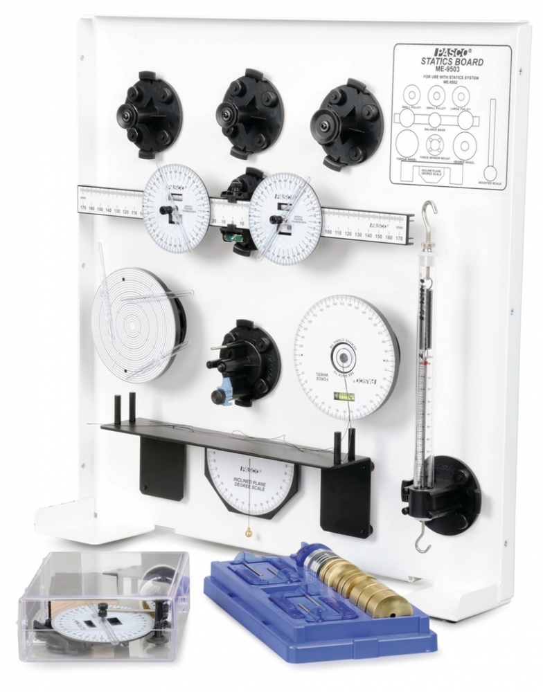 Набор "Статика" PASCO предназначен для обучения основам статики. Основа системы - это металлическая пластина (около 45 см х 45 см) белого цвета, на которой можно делать записи, например, диаграмму сил, формулы. Впоследствии эти записи могут быть легко удалены.