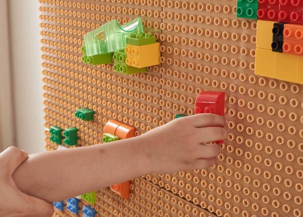 Блоки фиксируются на стене при помощи пластикового основания (ME28976). Совместимы с деталями из LEGO Duplo.
