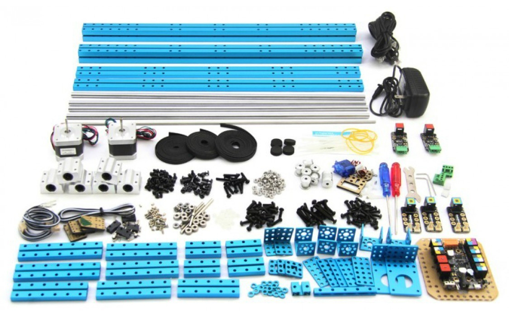 Этот комплект состоит из более 60 видов компонентов от Makeblock, включая балки, кронштейны, моторы, и т.д.