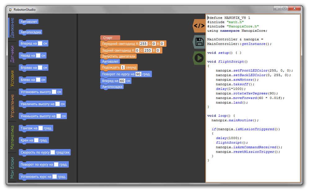Arduino IDE (Windows, Linux, MacOS) Roboton Studio (графическое программирование) (Windows, Linux) Python программирование (Windows, Linux, MacOS) Наземная станция (Windows, Linux, MacOS) Мобильное приложение для Android Мобильное приложение для iOS