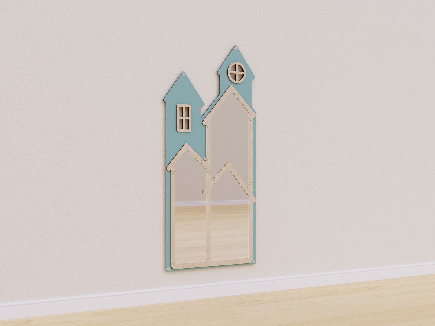 Настенная панель с безопасным зеркалом «Домик» (голубой) ✅