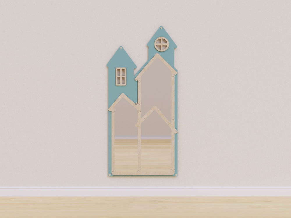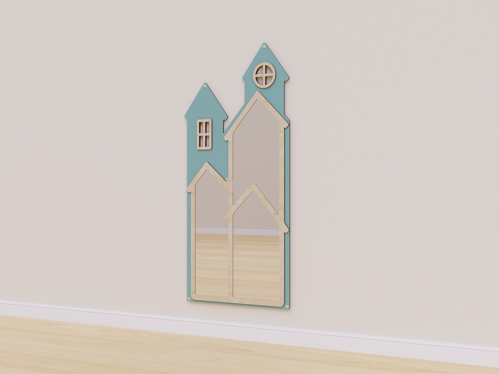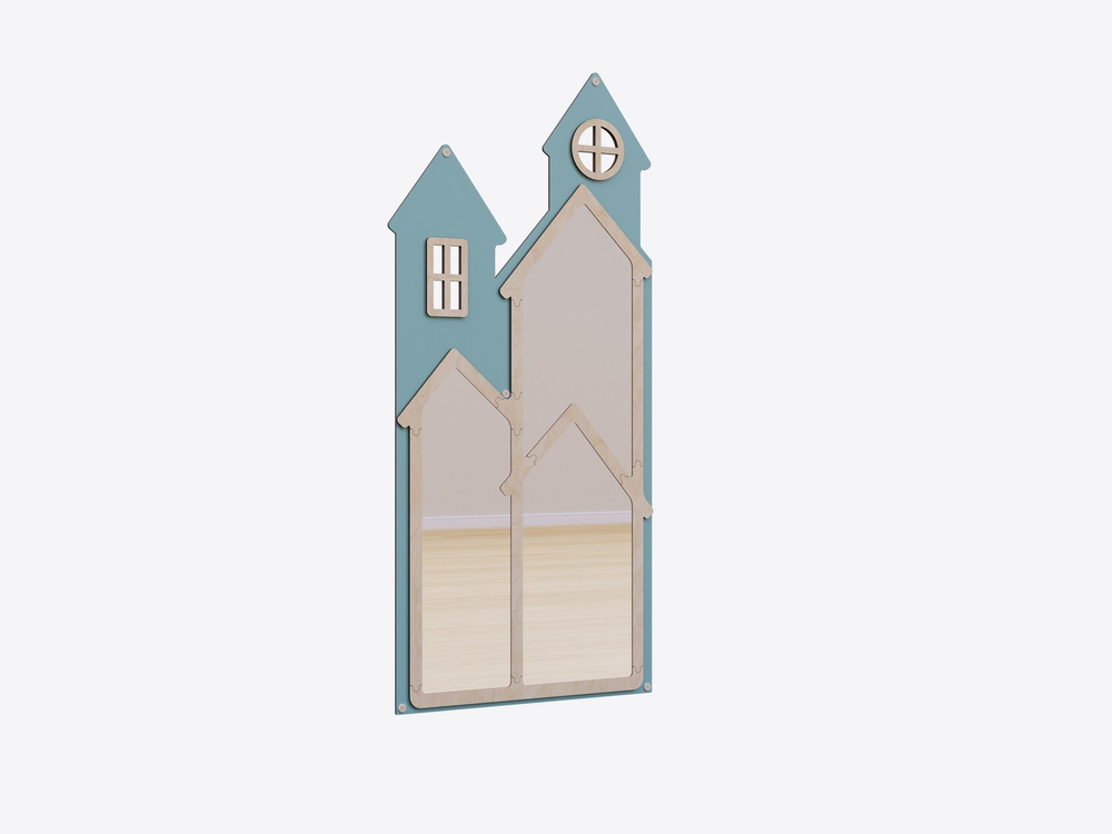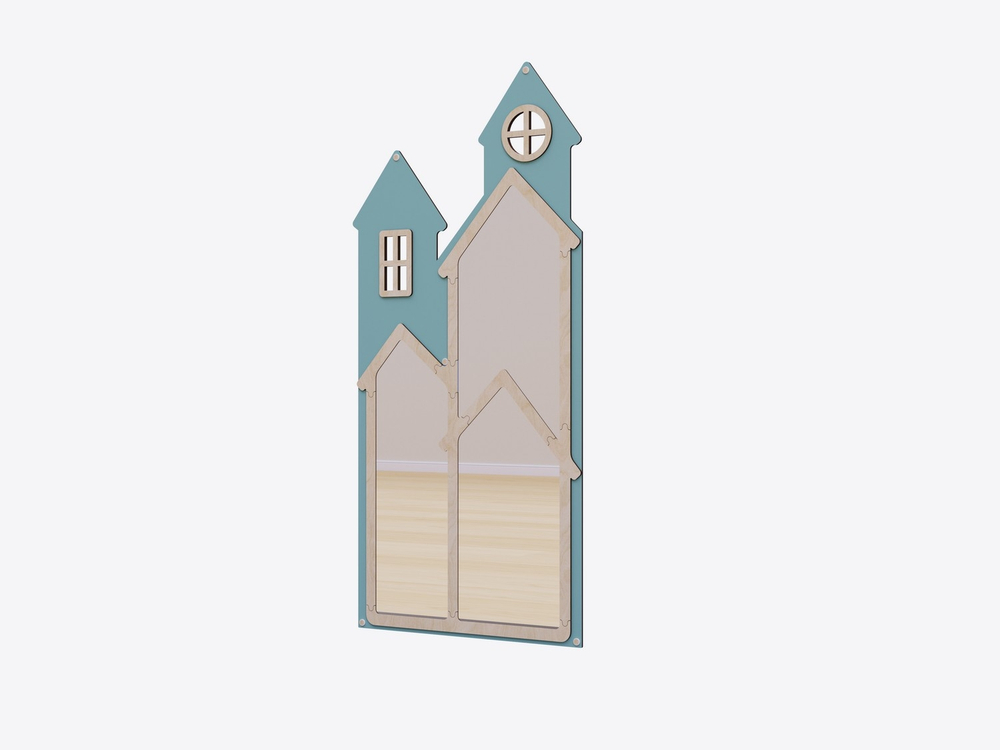 Настенная панель с безопасным зеркалом «Домик» (голубой)
