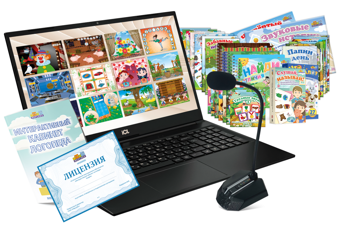 Комплект (ноутбук, ОС, ПО, микрофон, дидактические материалы) формирует часть РППС/ППРОС логопедического кабинета, обеспечивая необходимые материально-технические условия для реализации образовательных программ, в том числе инклюзивного образования детей с ОВЗ.