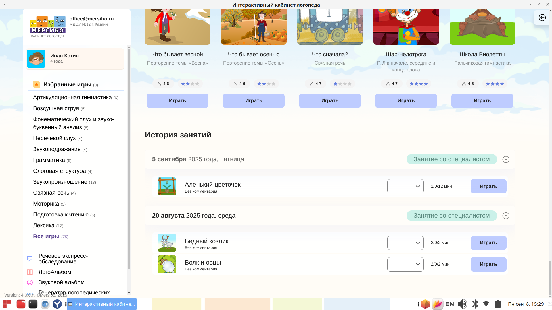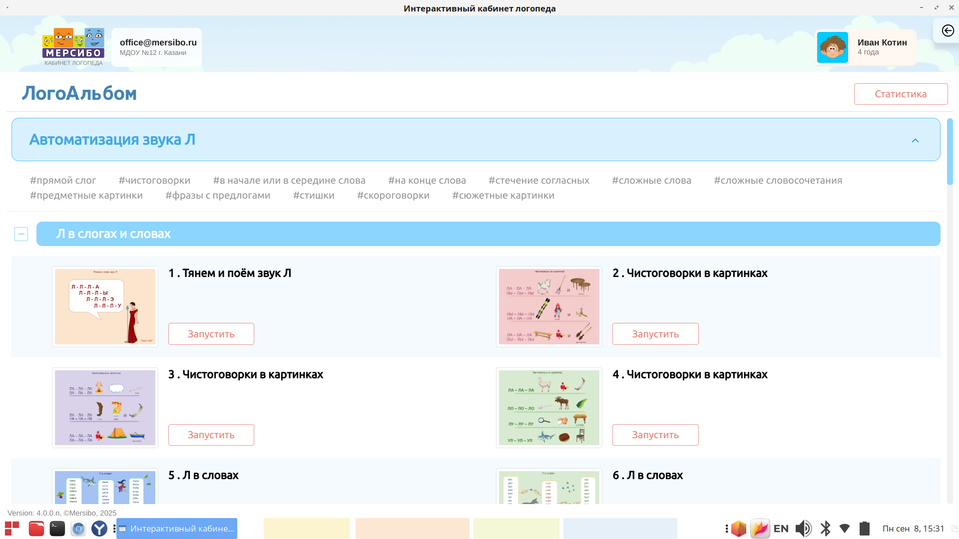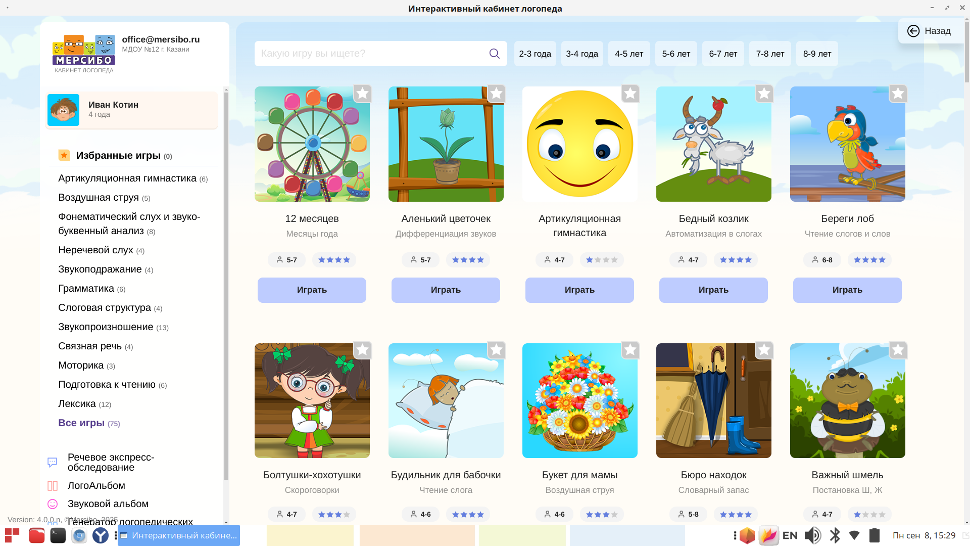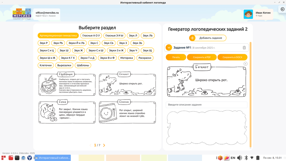 ПО «Интерактивный кабинет логопеда» является российской разработкой и включено в единый реестр российского программного обеспечения.
