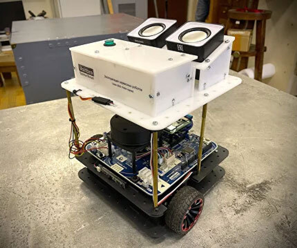 Образовательный комплект включает в себя колесного робота в сборе и набор оборудования для подготовки к соревнованиям по компетенции "Эксплуатация сервисных роботов" всероссийского чемпионатного движения "Профессионалы" и "Абилимпикс".