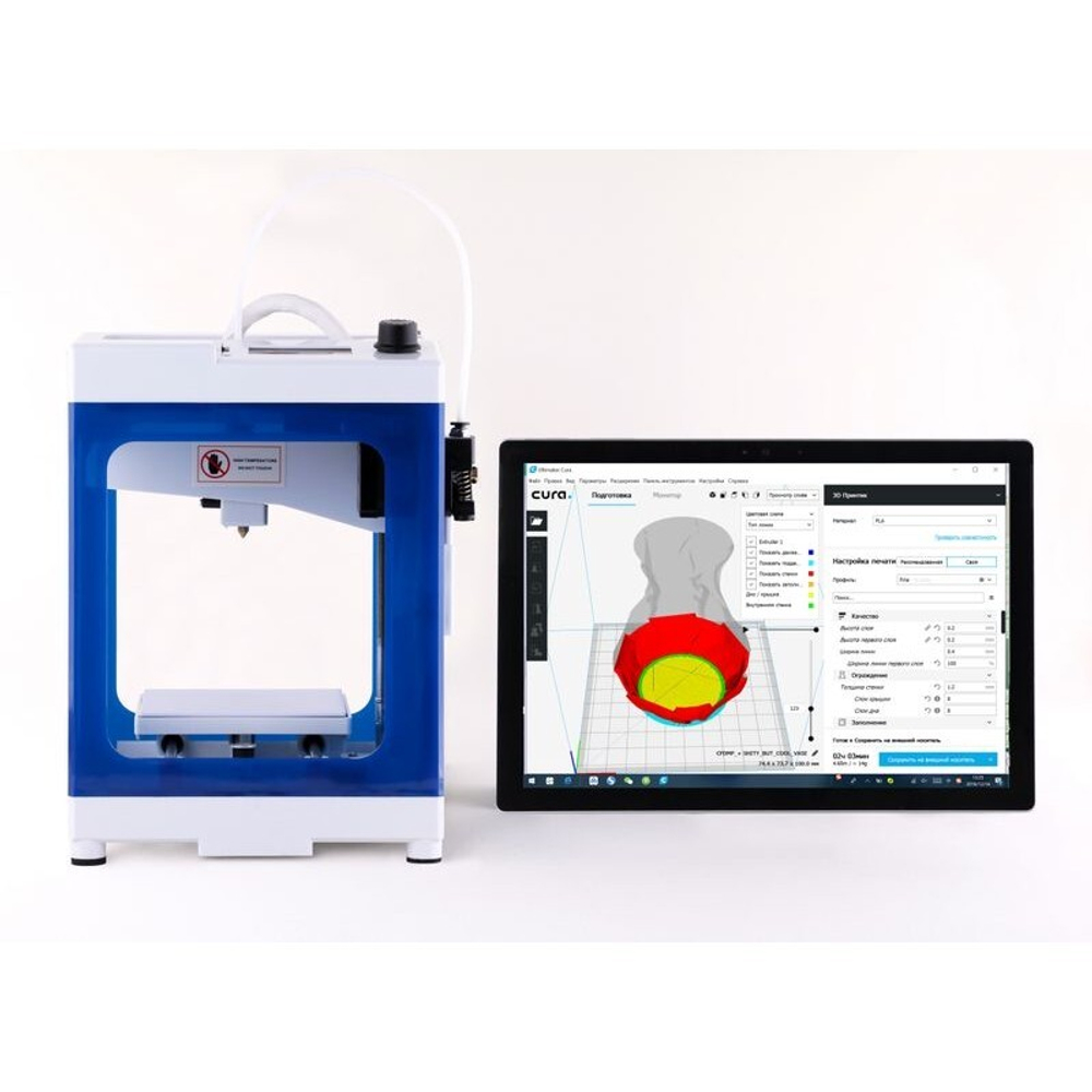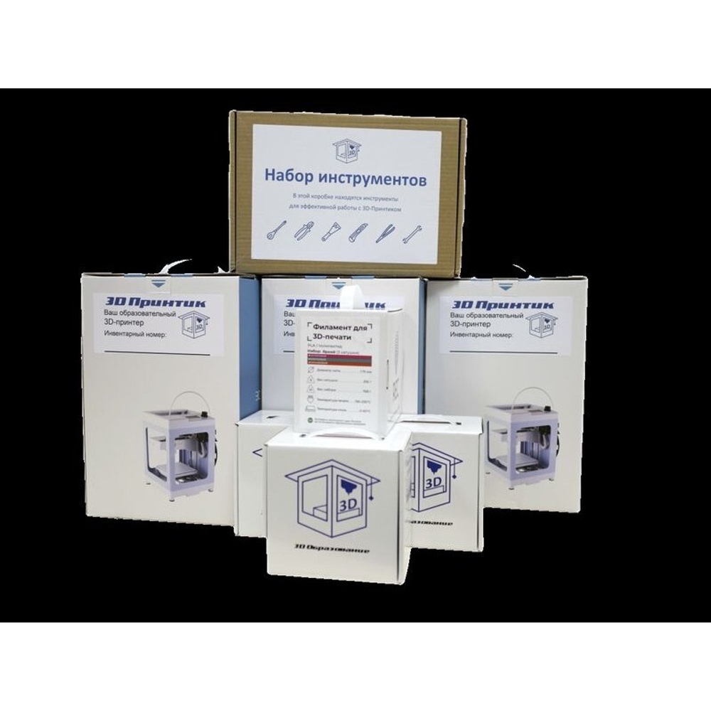 Образовательный комплект разработан специально для учебных организаций, рекомендован для работы с детьми начиная с 4 класса, простой и безопасный в работе и обслуживании. Включает в себя все необходимое для внедрения 3D-печати в образовательный процесс: 3D-принтеры “Принтик”, набор филамента для печати разных цветов, набор инструментов и запасных частей, а так же электронный носитель с необходимым программным обеспечением и методическими материалами.