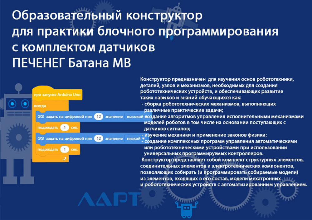 Образовательный конструктор для практики блочного программирования с комплектом датчиков ЛАРТ «ПЕЧЕНЕГ Батана MB» ✅