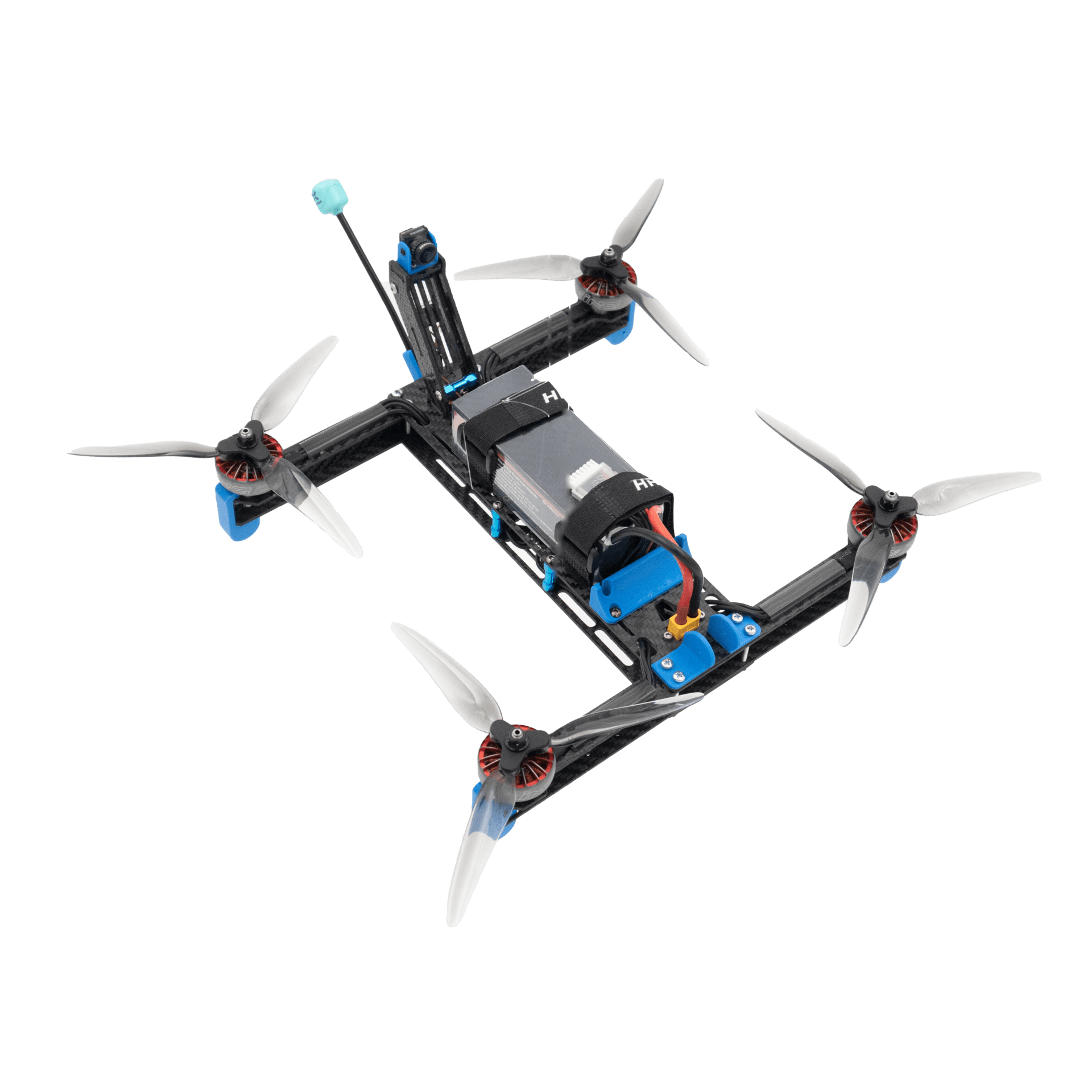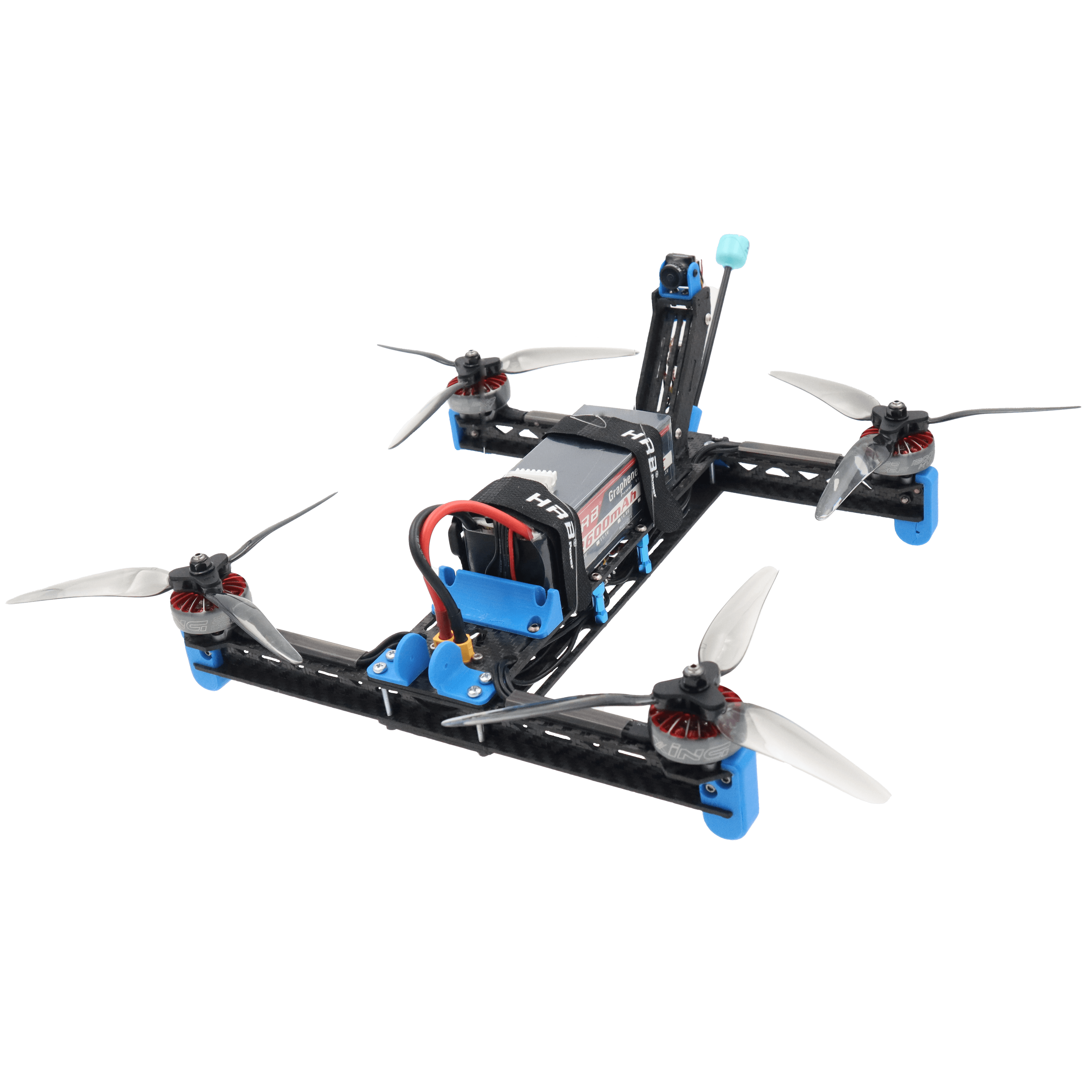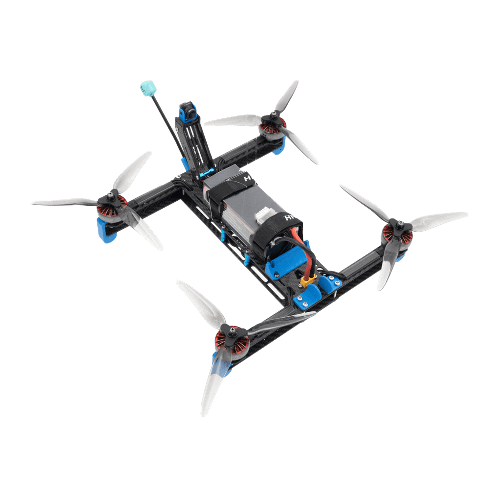 Дрон оснащен карбоновой рамой,которая обеспечивает исключительную прочность и легкость, критически важные для гоночных дронов.