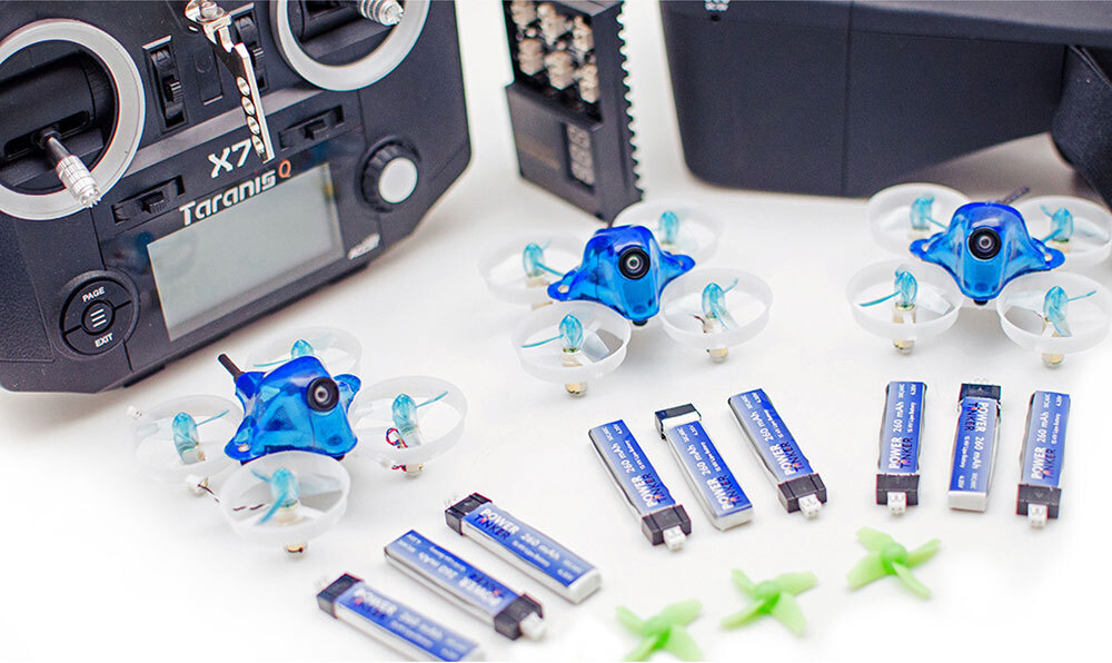 Большой набор квадрокоптеров и аксессуаров для практического обучения полётам, проведения соревнований между учащимися и образовательным учреждениями.