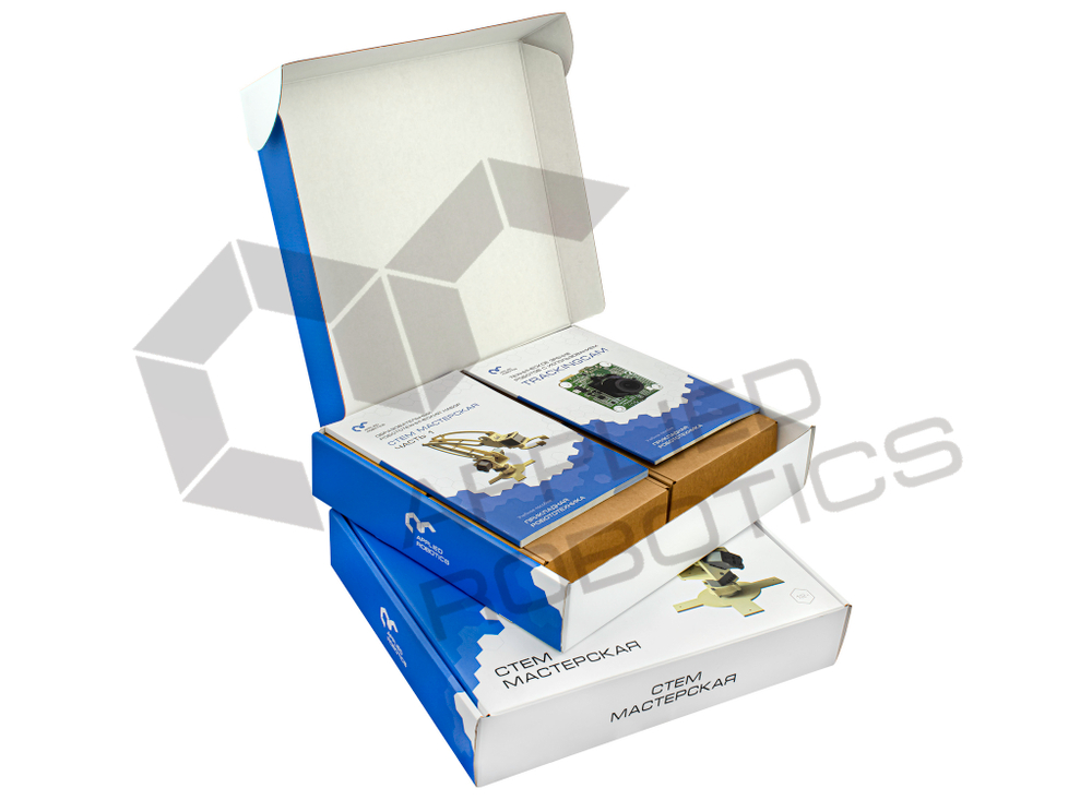 Образовательный набор для изучения многокомпонентных робототехнических систем и манипуляционных роботов "Образовательный робототехнический комплект "СТЕМ Мастерская". Расширенный" предназначен для изучения основ разработки и конструирования моделей промышленных манипуляционных роботов различного типа и автономных мобильных роботов. В состав комплекта входят сервомодули, представляющие собой модели промышленных автоматизированных приводов со встроенной системой управления. Применение данного типа сервомодулей позволяет разрабатывать модели манипуляционных роботов с различными типами кинематической схемы, обладающих высокой точностью и динамикой движения.